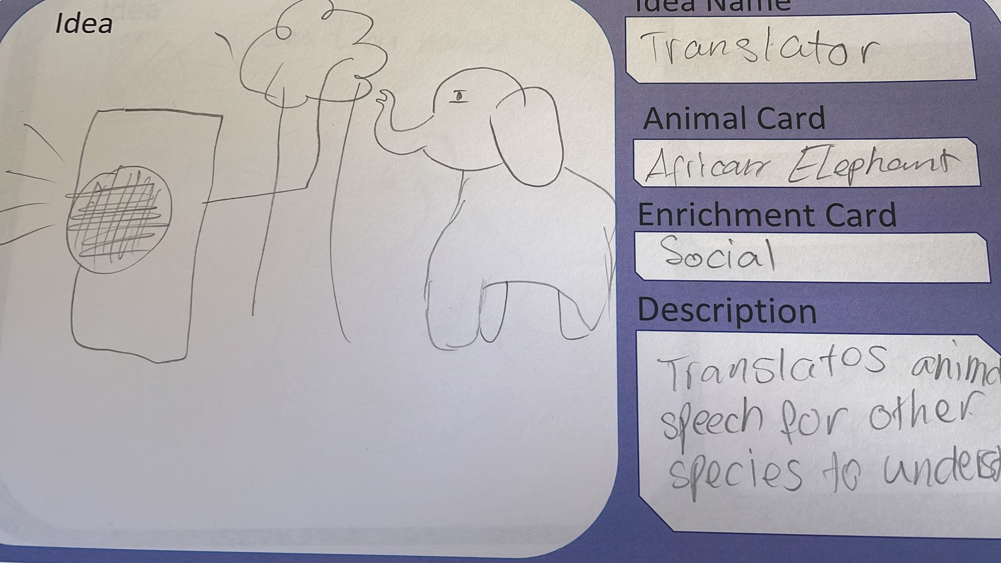 We have found that children often imagine technological and non-tech solutions. The drawings often tell stories of how children envision animals, and themselves. While not all the designs are appropriate for usage with animals, this game supports children to think about what animals in different ways. Especially about what animals would want and need.